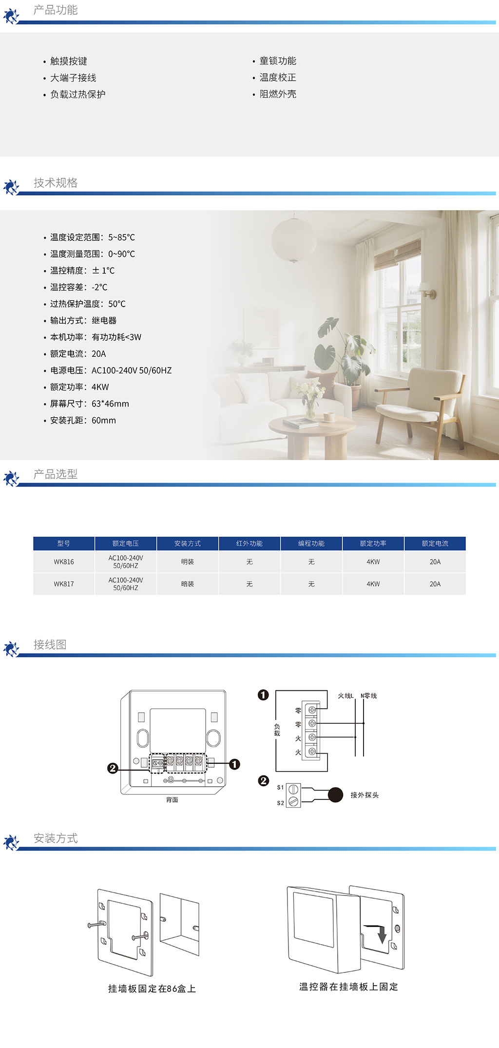 壁挂炉水暖温控器